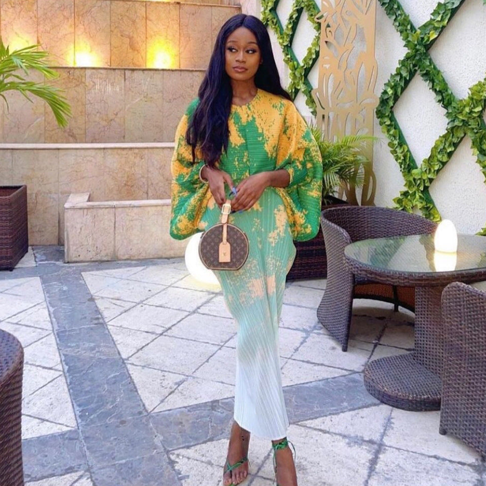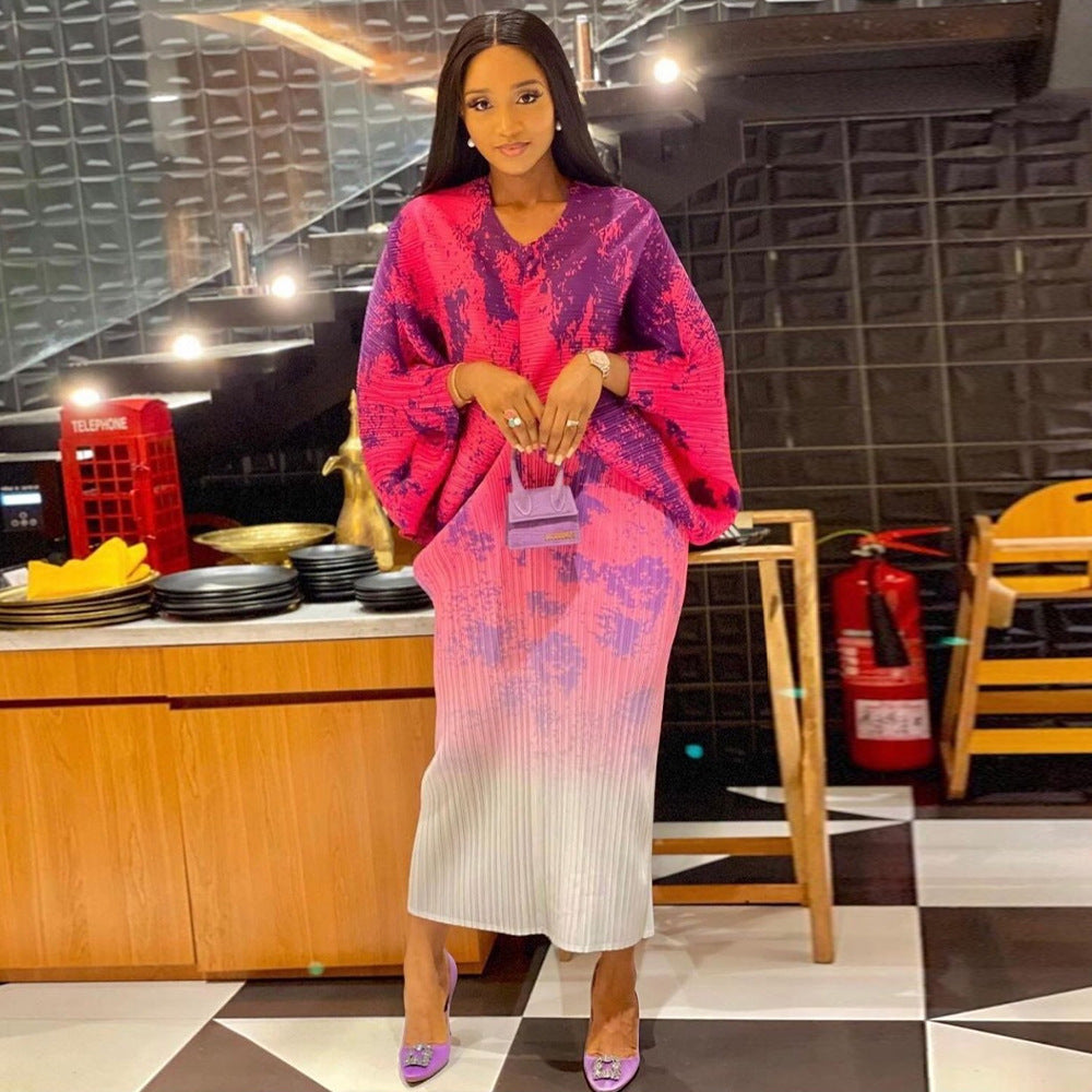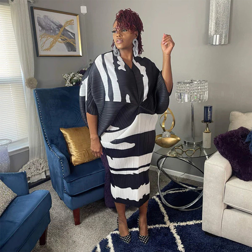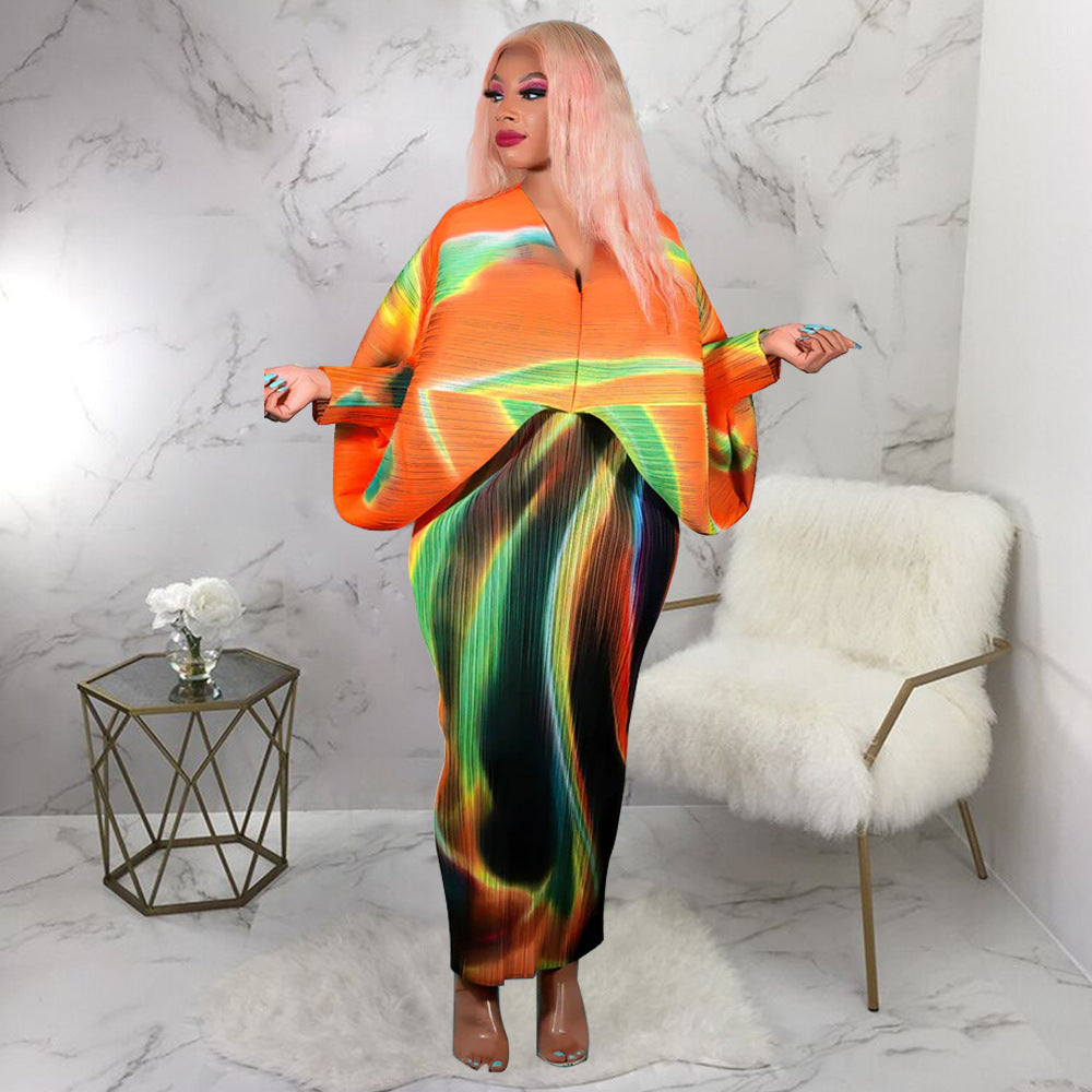 • Load image into Gallery viewer, V-neck bat sleeve print dress(AY2612)