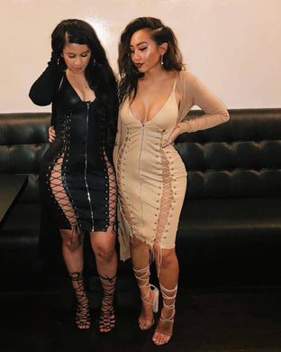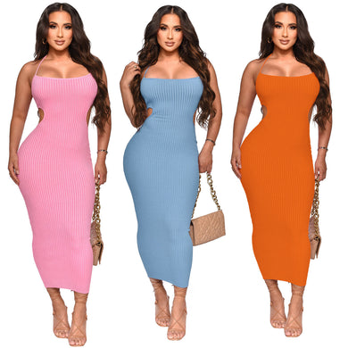 Fashion tassels sleeveless sexy stitching knitted dress AY2664
