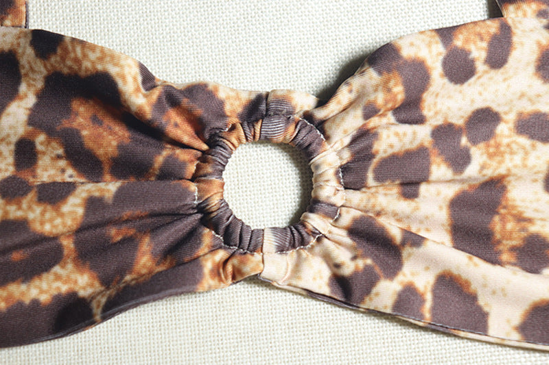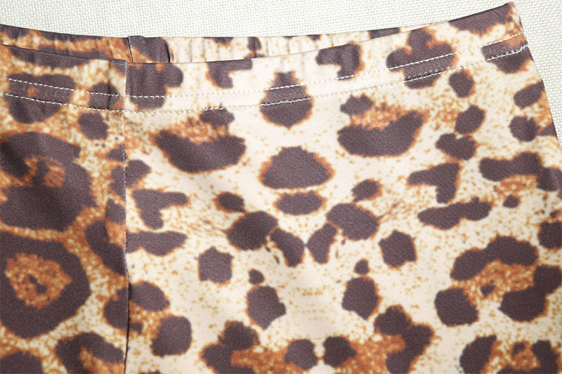 Fashion leopard print suit sexy wrap chest suspenders trousers two piece set