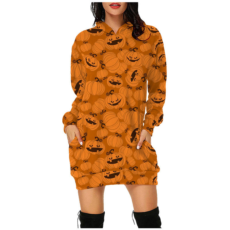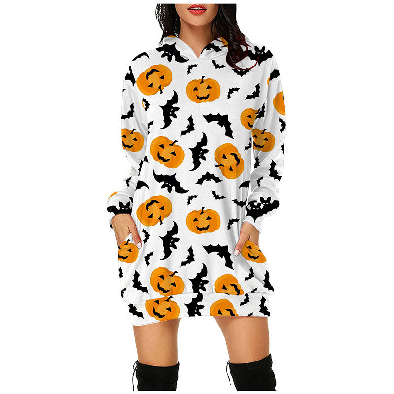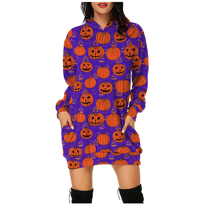 • Load image into Gallery viewer, Halloween hooded long sleeve dress(AY1401)