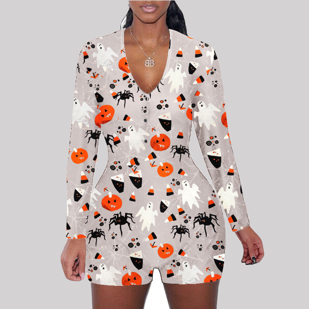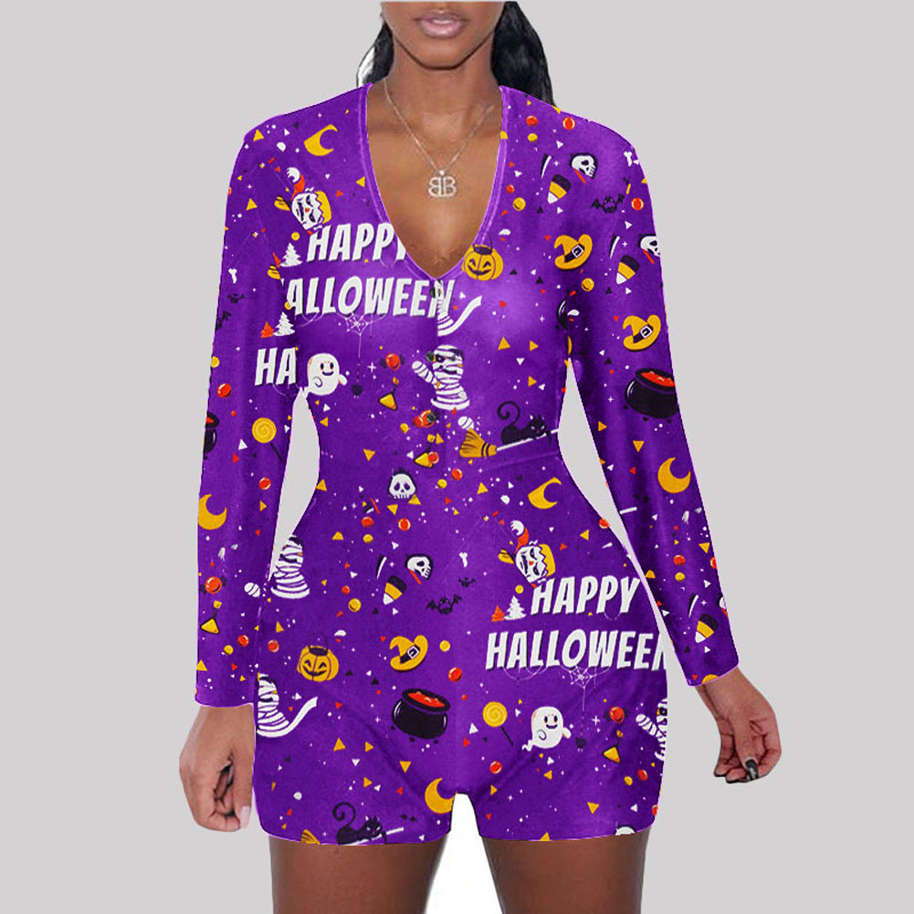 • Load image into Gallery viewer, Halloween print long sleeve jumpsuit(AY1436)