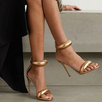 Gold rhinestone gemstone rhinestone slim heel open toe sandals HPSD301