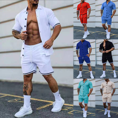 Lapel Button Down Short Sleeve Shorts Set(AY2248)