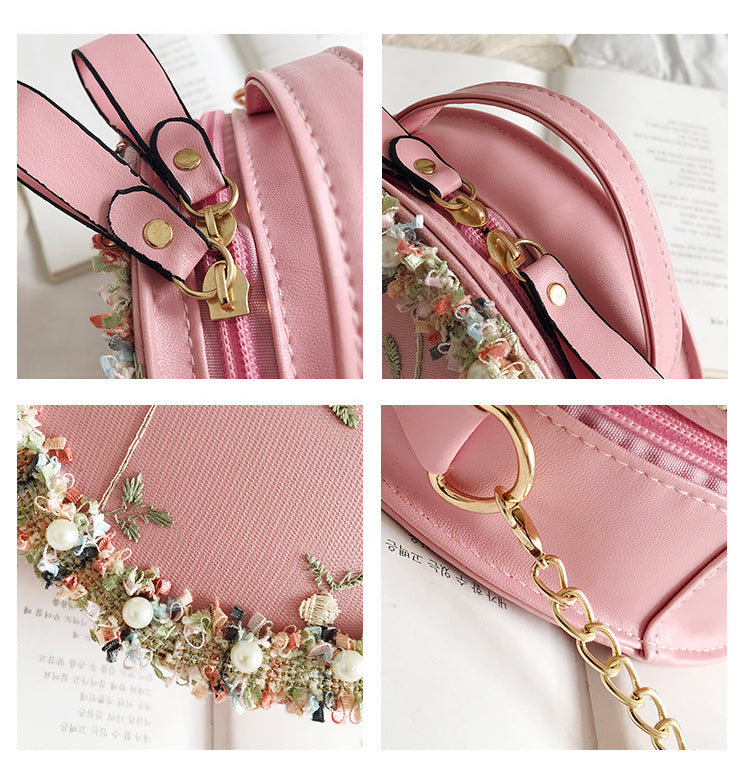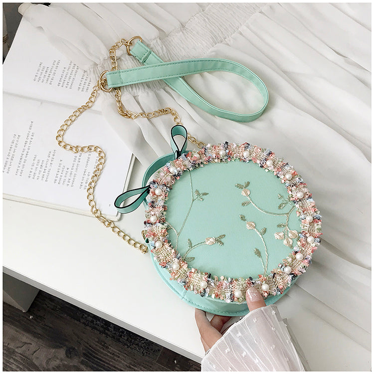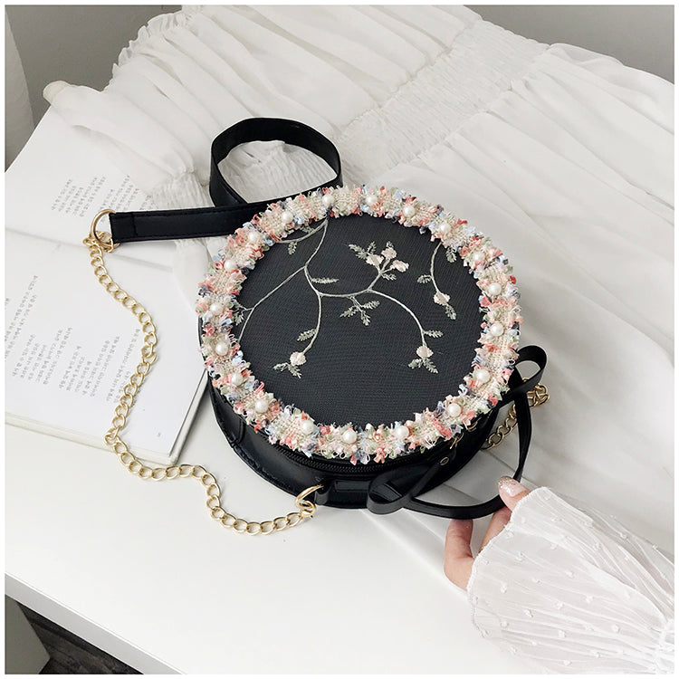 • Load image into Gallery viewer, Lace flower chain shoulder small round bag AB2030