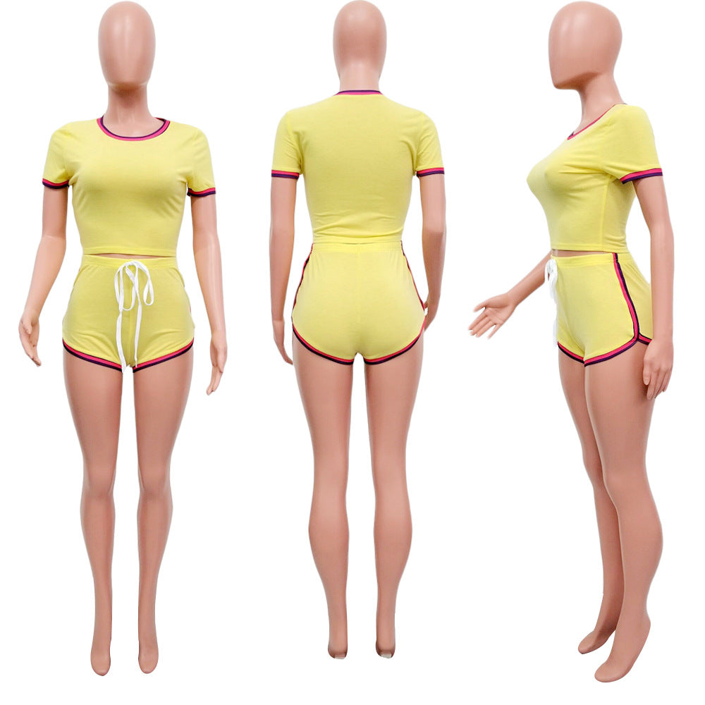 Fashion Solid Color Side Stripe Top Shorts Set(AY2293)
