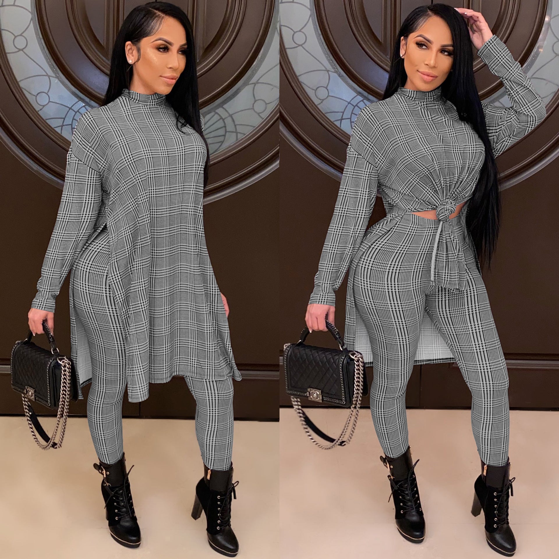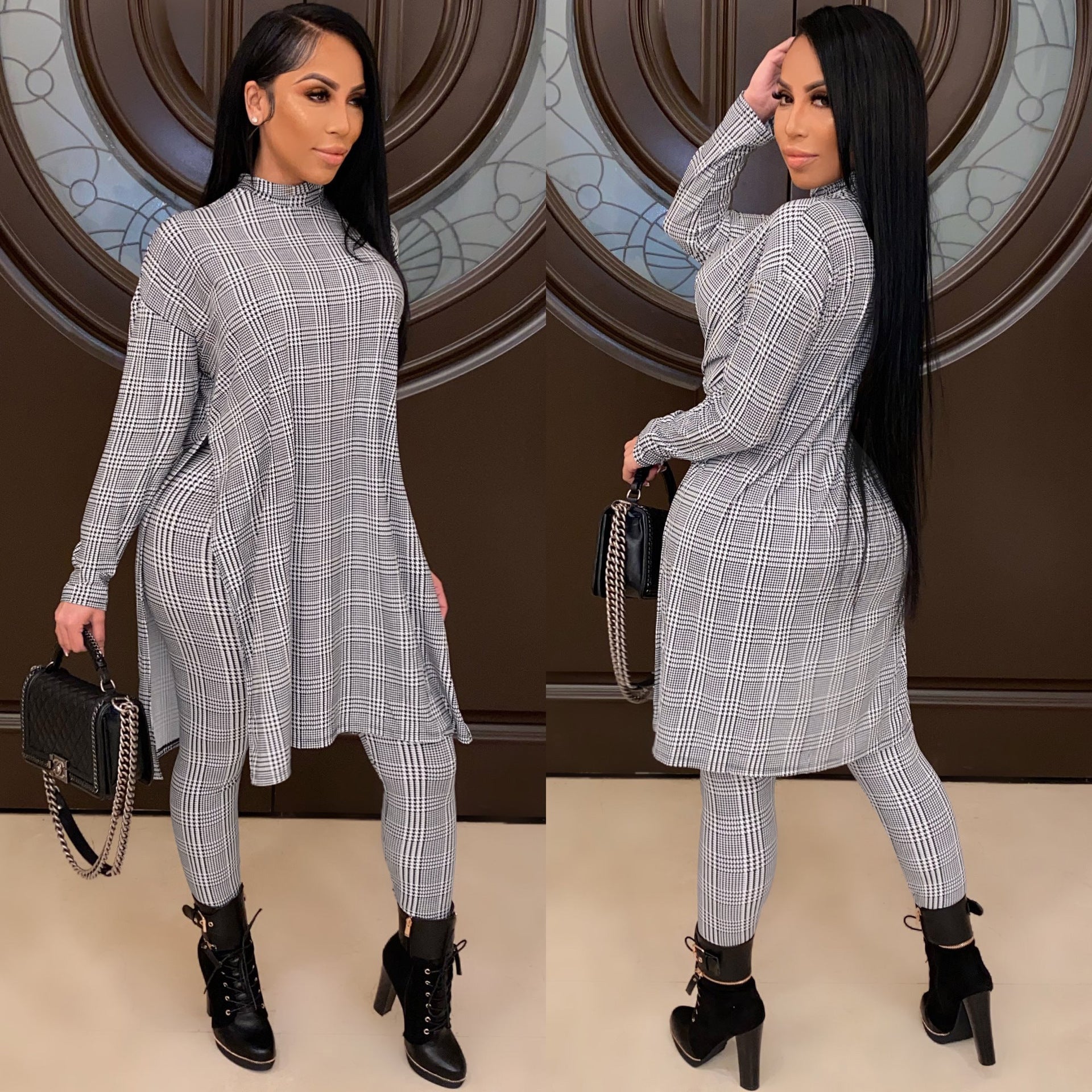 • Load image into Gallery viewer, New houndstooth print high neck suit(AY1233)