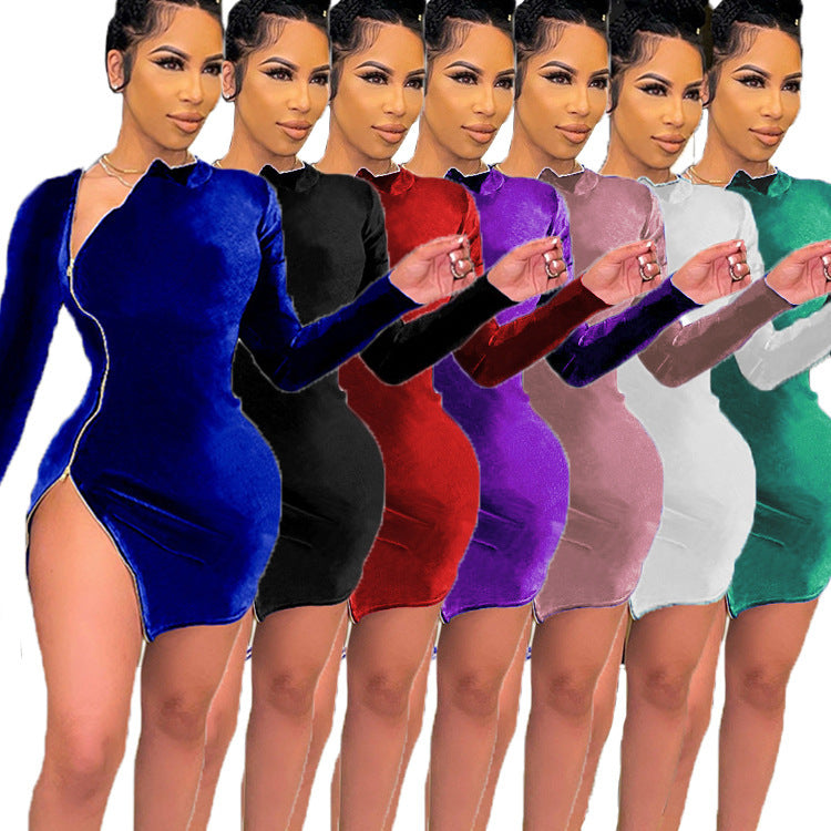 • Load image into Gallery viewer, Sexy zipper side slit dress(AY1437)