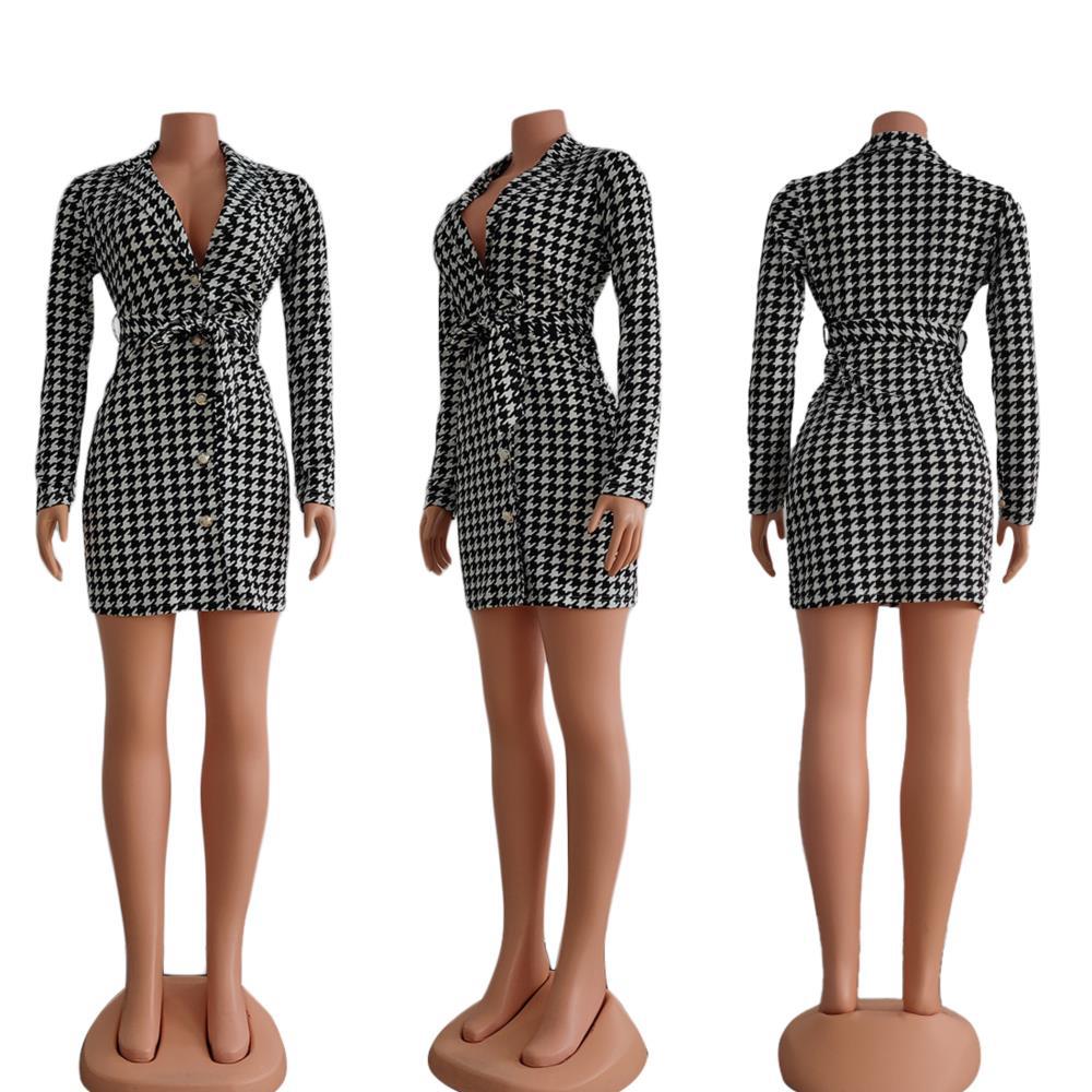 • Load image into Gallery viewer, V-neck tight-fitting hip dress (including belt) AY1620