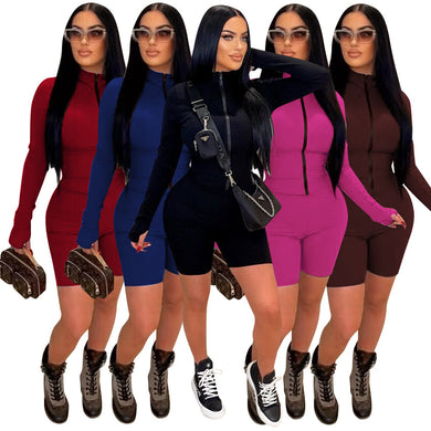 Stylish solid color zippered high-waisted two-piece suit AY2585