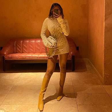 Halter slim knit dress with hips(AY1494)
