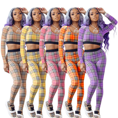 Female printed plaid casual shirt suit(AY1254)