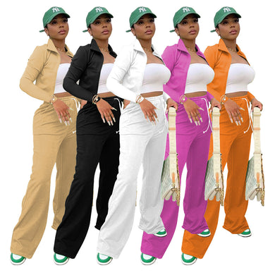 Stand-up collar zipper coat wide leg pants two-piece suit AY1273