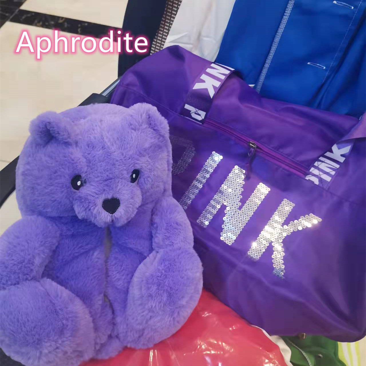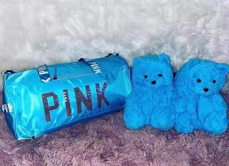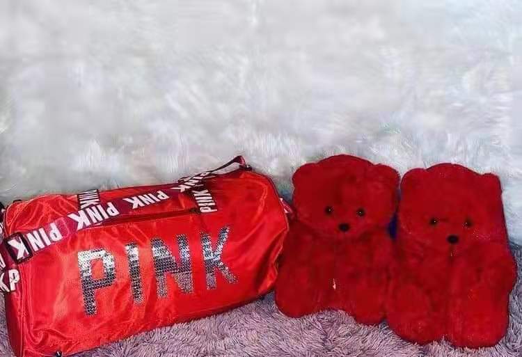 Sequin bag + teddy bear slippers sets