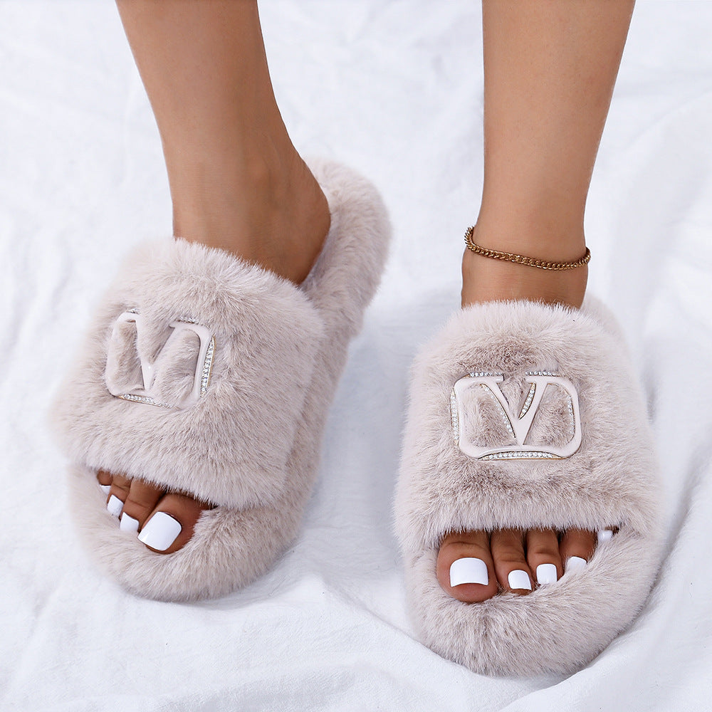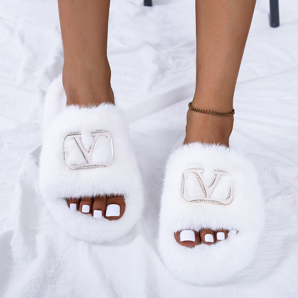 Fashion Letter Buckle Plush Slippers(HPSD183)