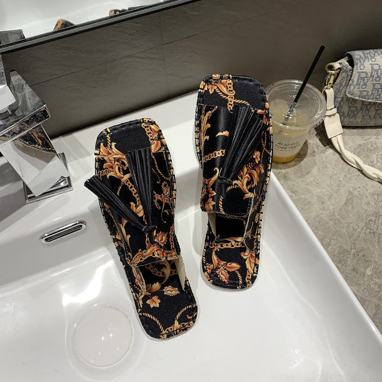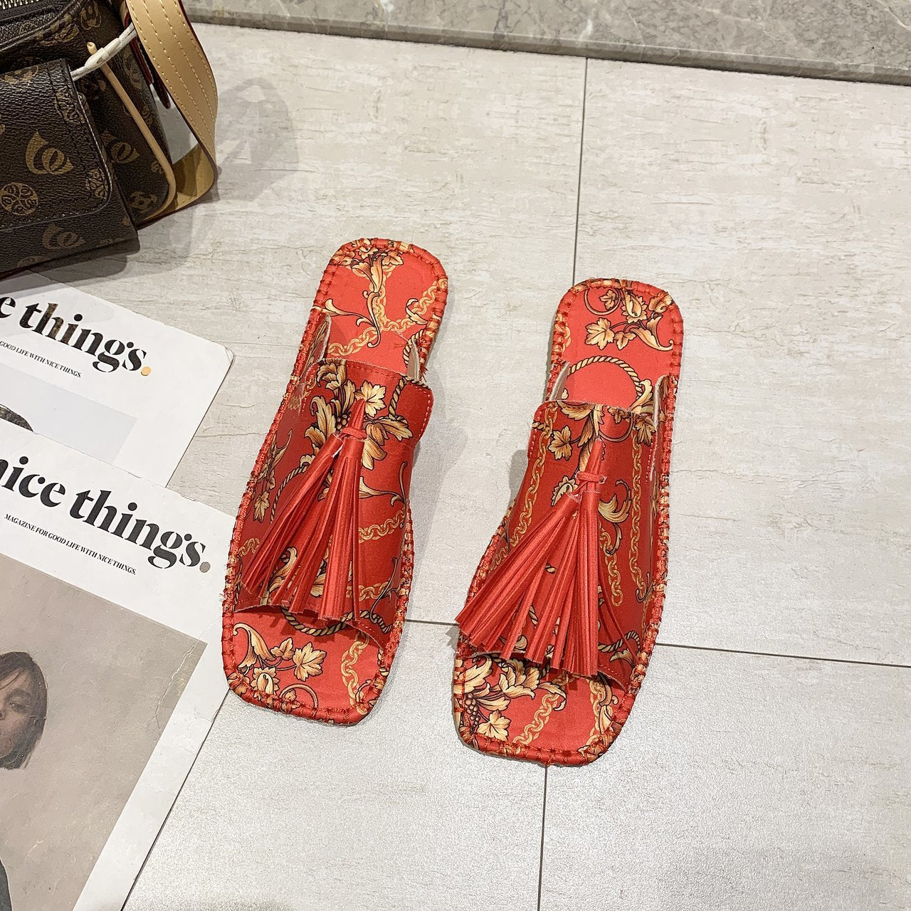 • Load image into Gallery viewer, New style tassel printing slippers SY0111