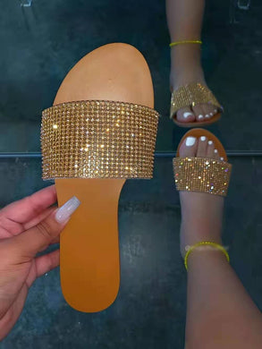 Square head rhinestone butterfly colorful slippers (only slippers)