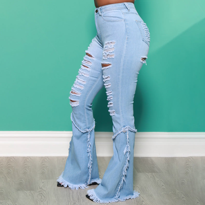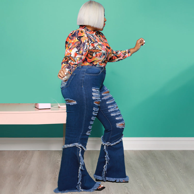 Fashion flared fringed PLUS jeans(AY1648)