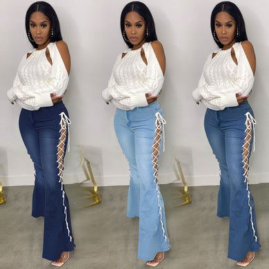 Hot-selling patchwork ripped elastic slim-fit flared pants