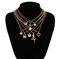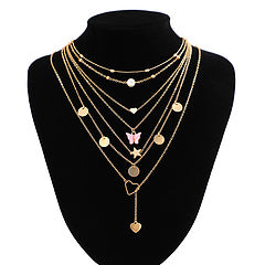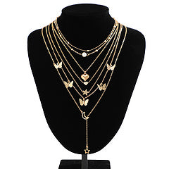 Butterfly tassel pendant with stacked necklace set AE4146