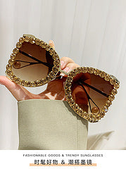 Diamond-encrusted fashion large frame sunglasses AE4148