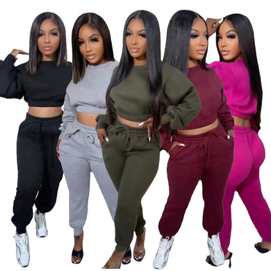 • Plush sweater hoodie drawstring stack pants set(AY2532)