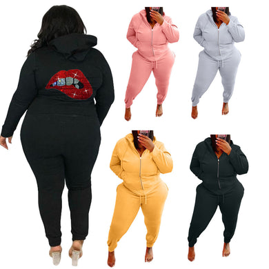 • Plus velvet drawstring hooded two-piece suit(AY1467)