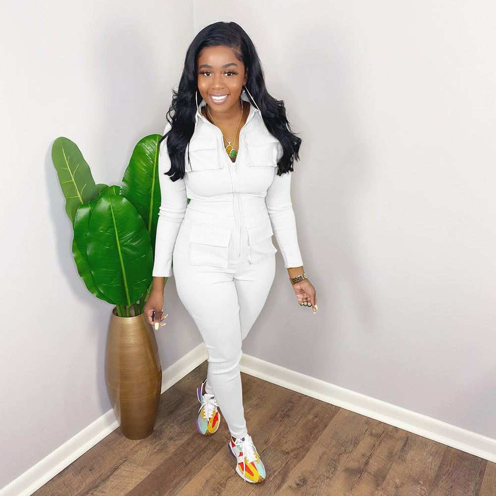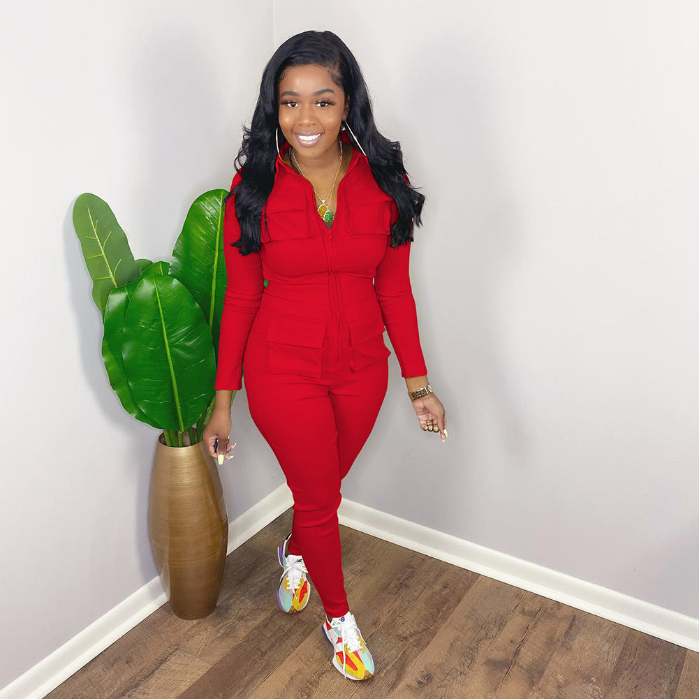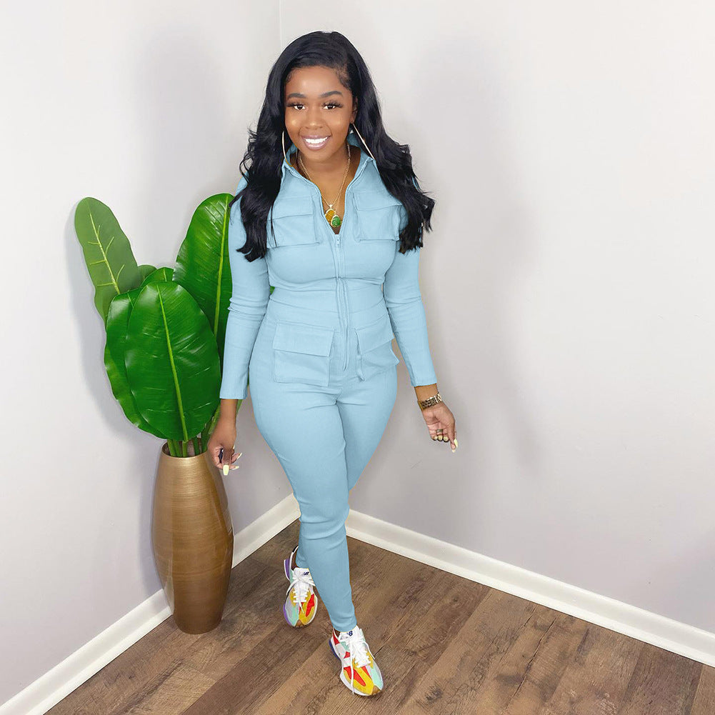 Fashion solid color pocket jumpsuit AY3138