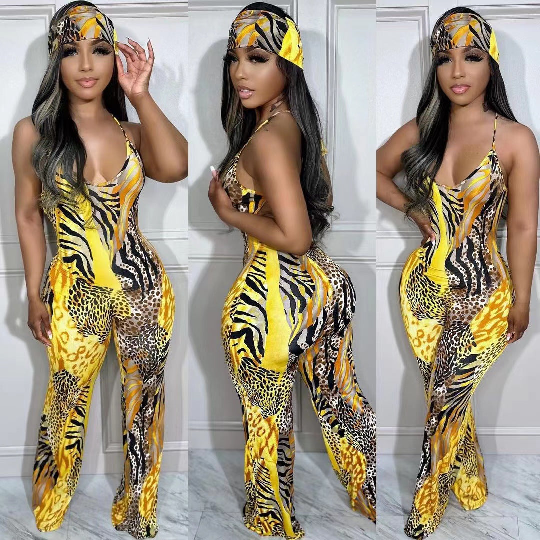 Leopard print women's suspender jumpsuit (with headscarf) AY2924