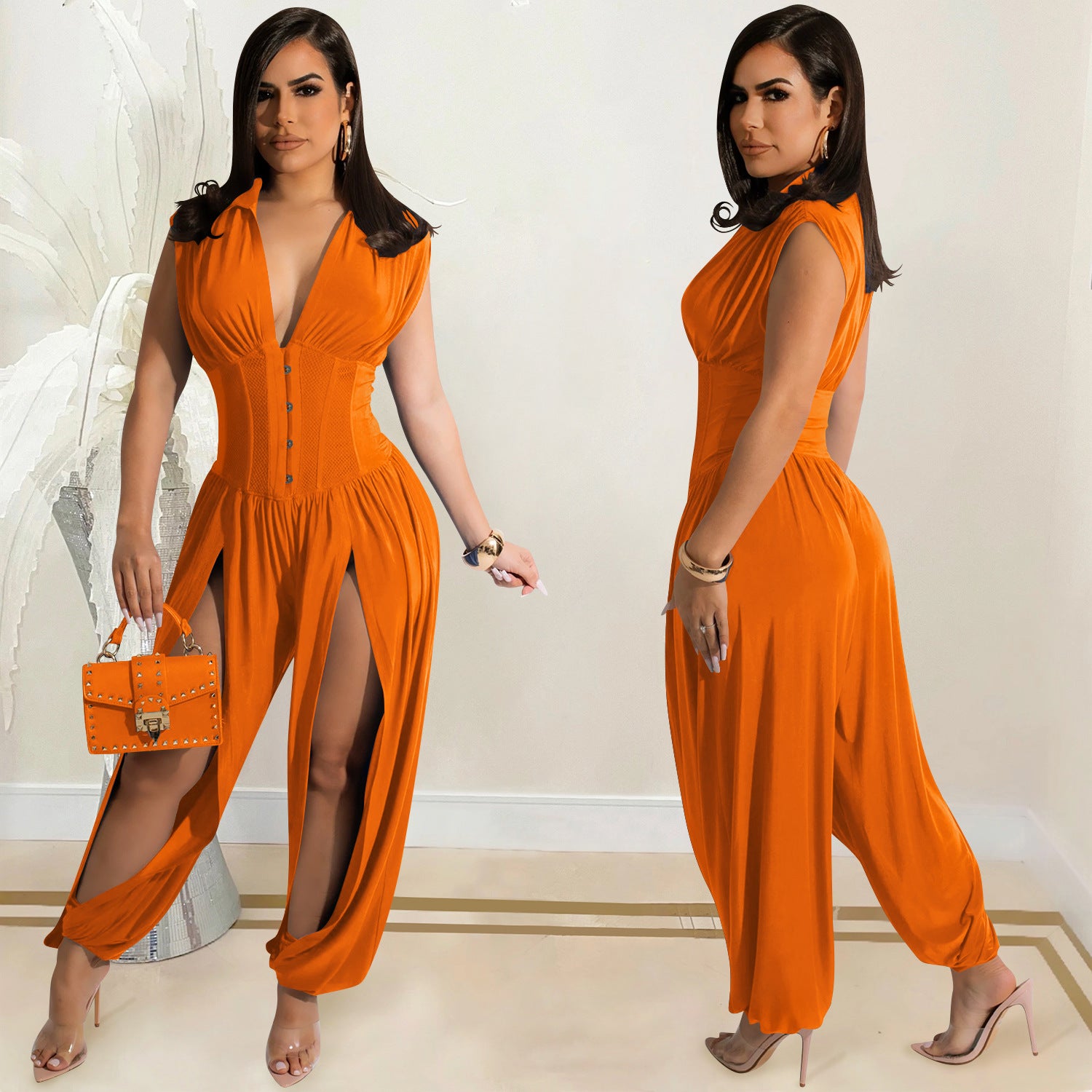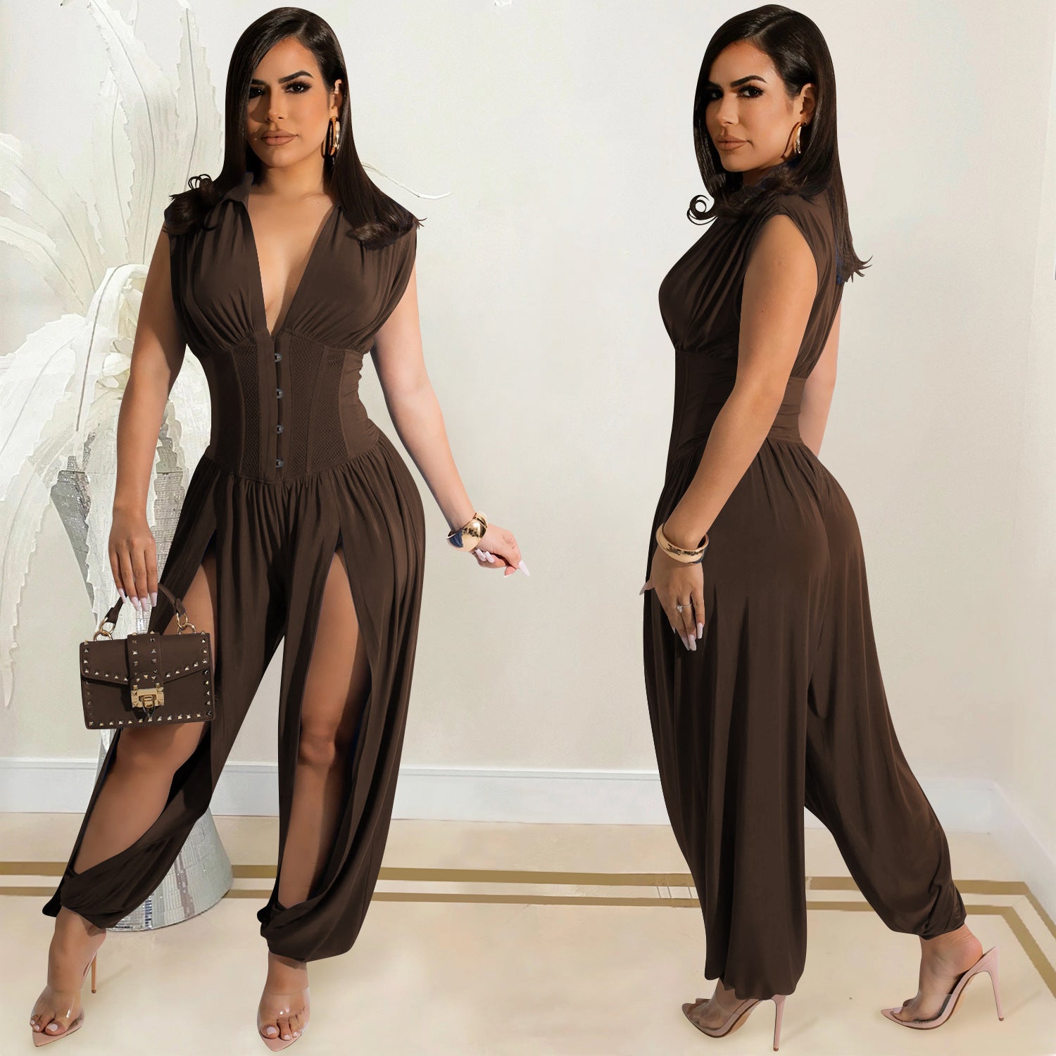 Sexy deep V sleeveless hollow out Jumpsuit AY2114