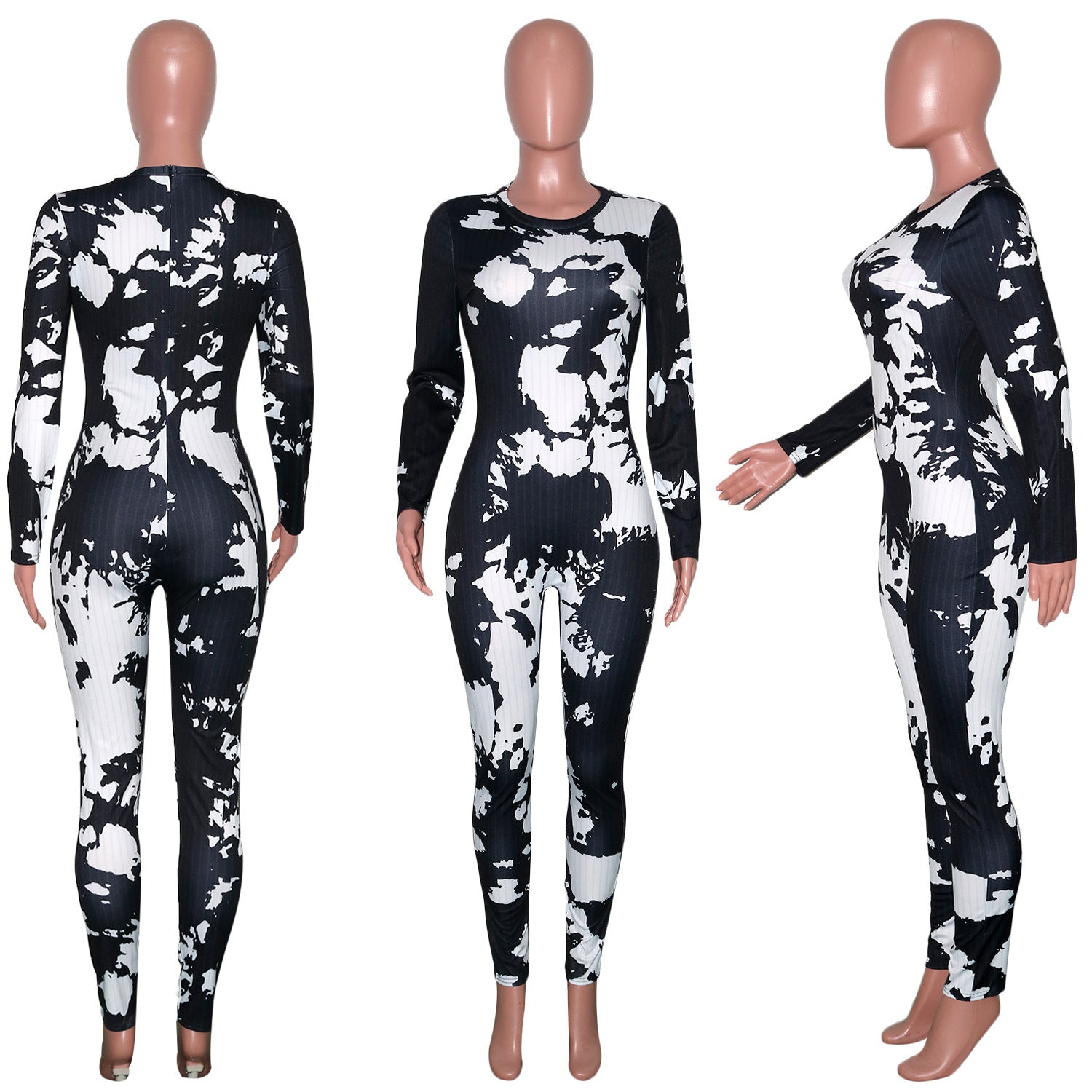 Sexy Tie Dye Print Crew Neck Jumpsuit(AY1666)