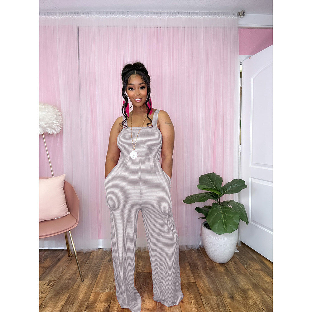 • Load image into Gallery viewer, Striped pocket loose long drawstring jumpsuit AY2919
