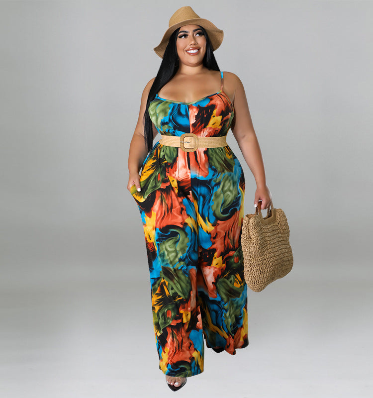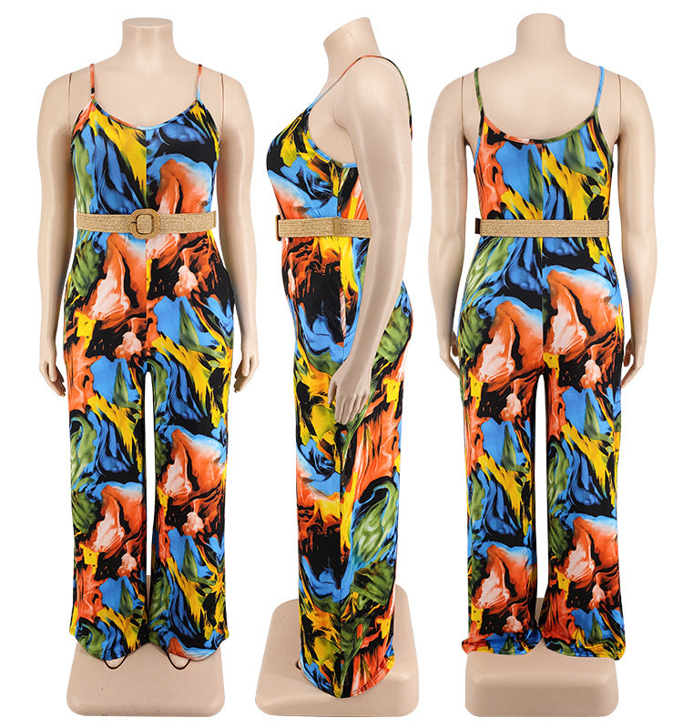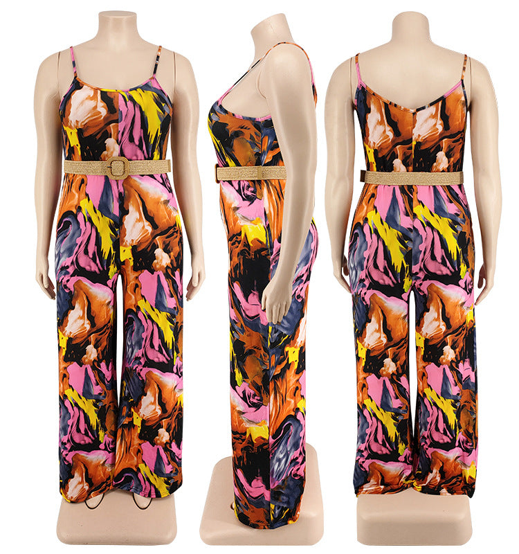 • Load image into Gallery viewer, Suspender printed Jumpsuit with belt AY2125