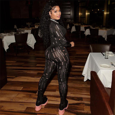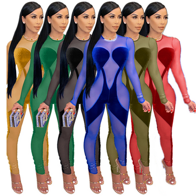 Sexy Mesh Long Sleeve Jumpsuit(AY1590)