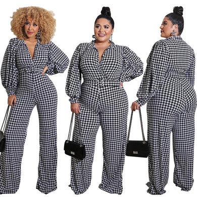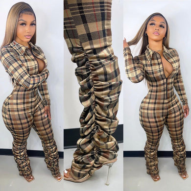 Fashion plaid pleated zipper jumpsuit(AY1635)
