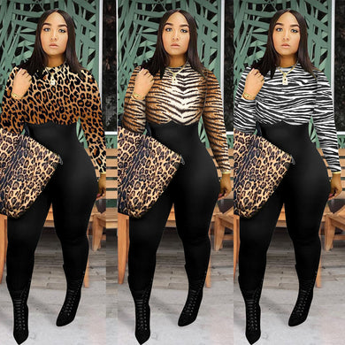 Sexy Leaf Print Long Sleeve Jumpsuit Trousers Set