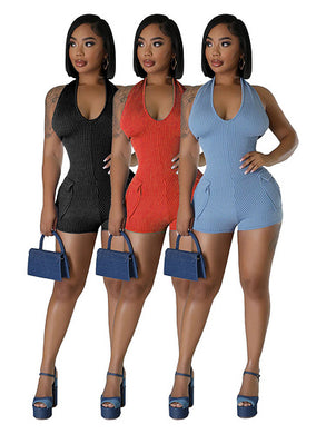 Sexy babes solid color cut-out sleeveless halterneck tie jumpsut AY3508
