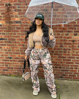 Casual camouflage printed workwear style straight bucket pants AY3324