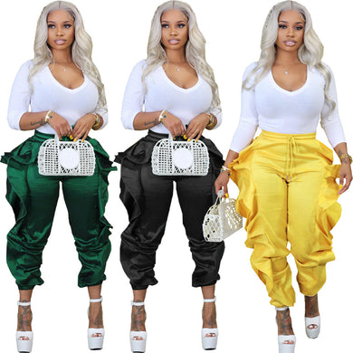 Bright color strapping multi-pocket street trendy casual pants(AY2662
