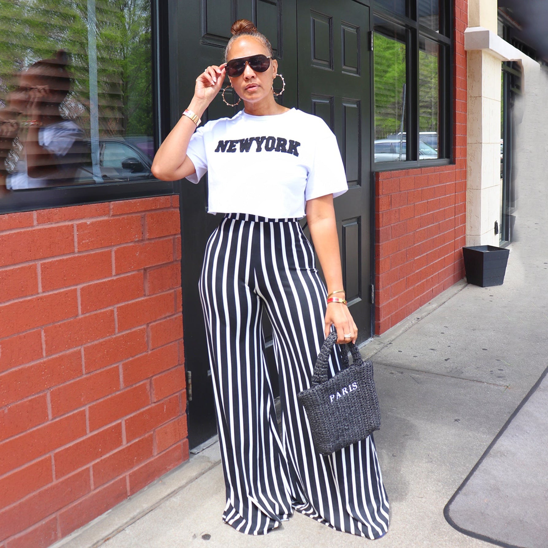 • Load image into Gallery viewer, Striped printed loose leg pants AY2811