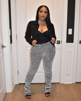 Stripe knitted hollow jacquard flare pants(AY2408)