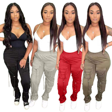 Spring and autumn stretch multi-bag reflective straight tube sports fitness casual pants(AY2575)