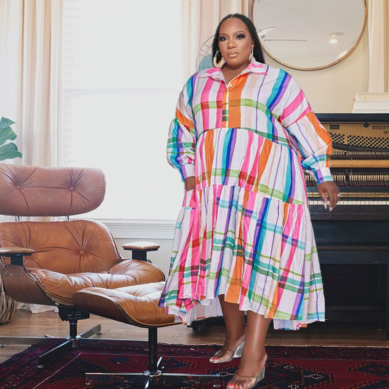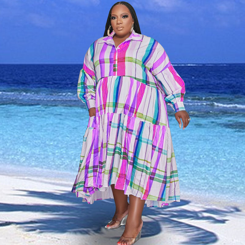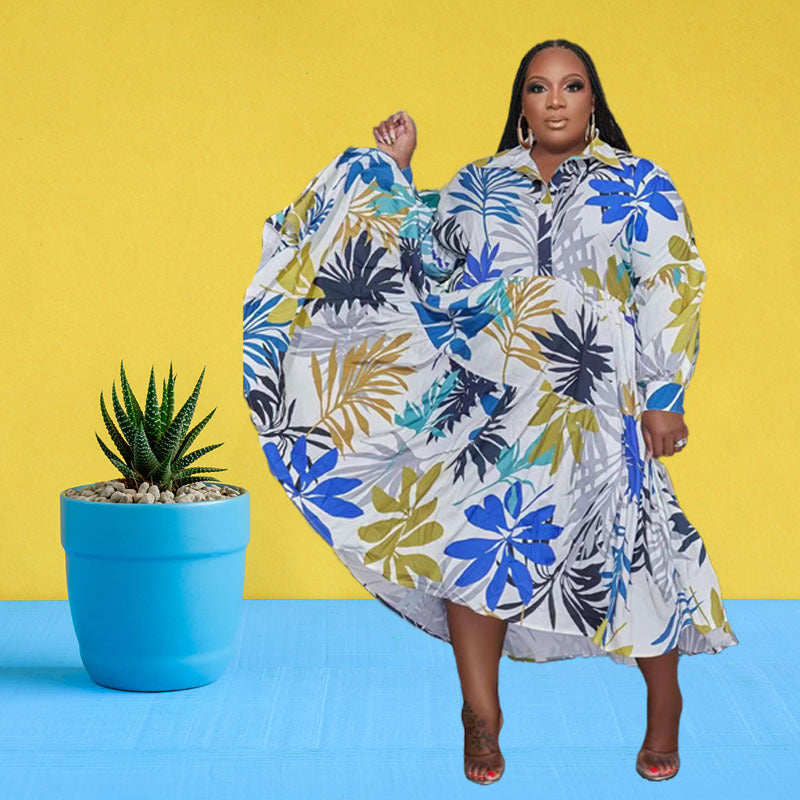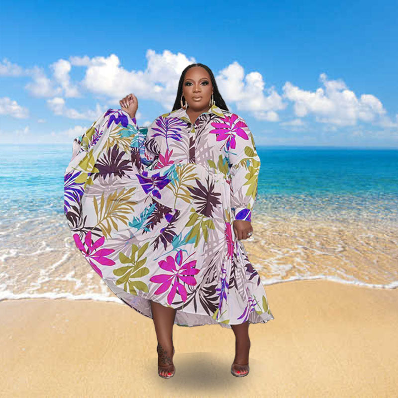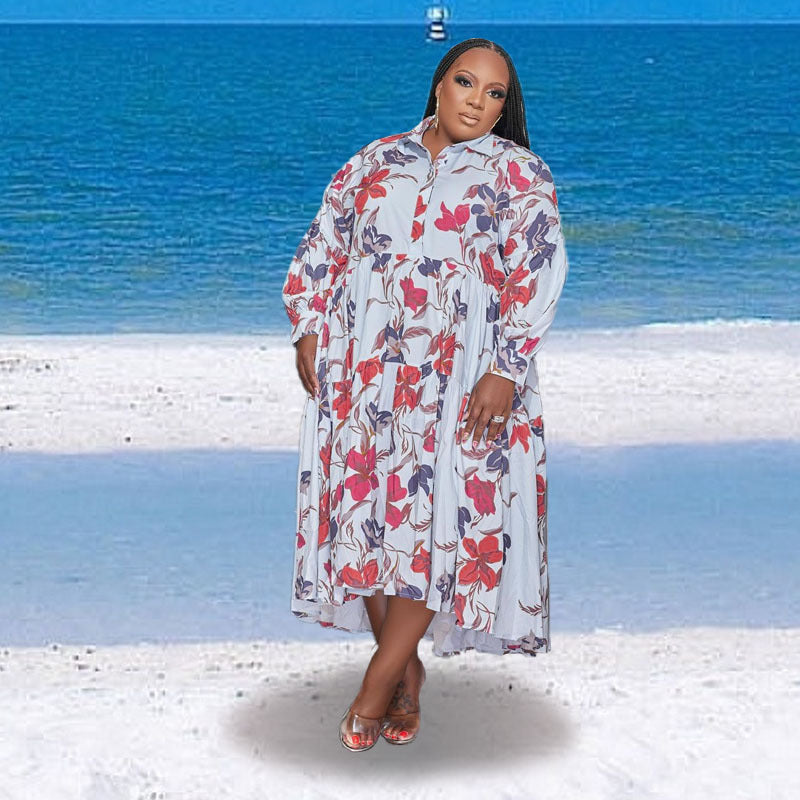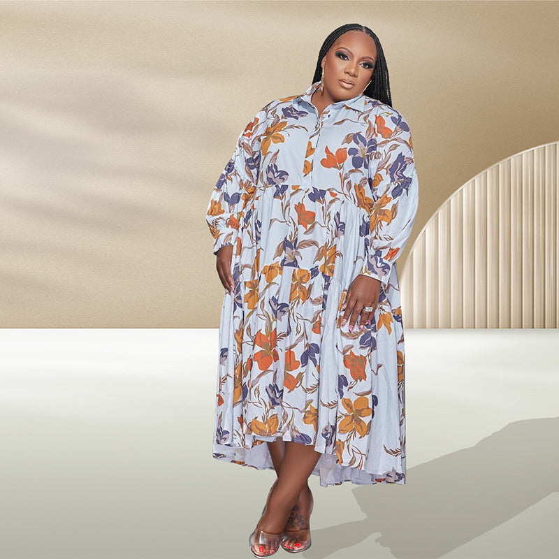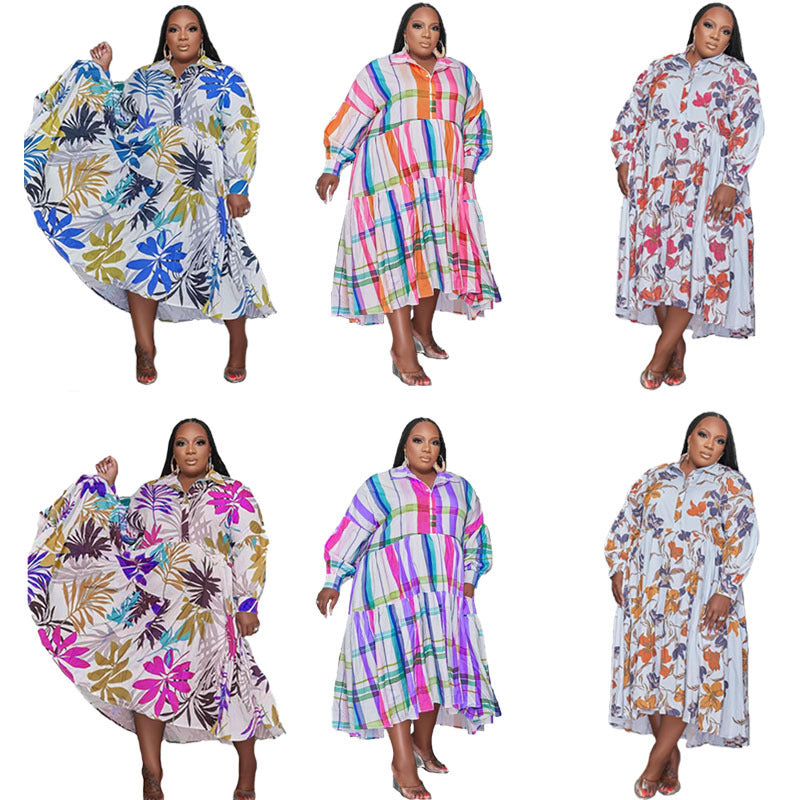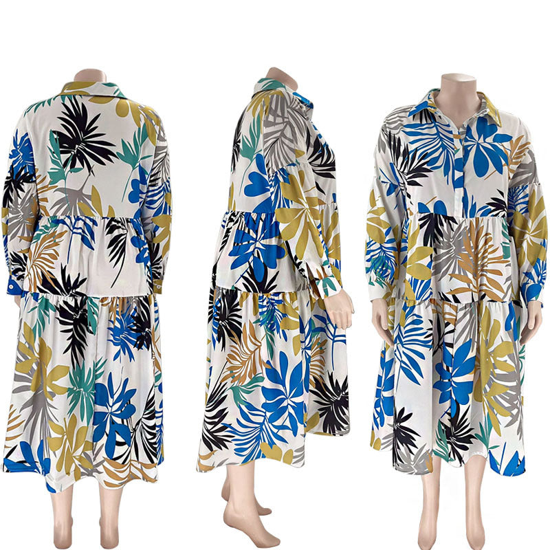 Print Lapel Long Sleeve Shirt Dress(AY2402)