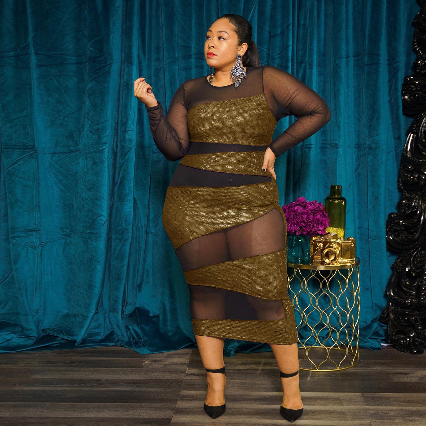 Sexy Shiny Patchwork Sheer Dress(AY1778)