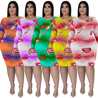 Long Sleeve Collar Print Open Tube Dress(AY2428)