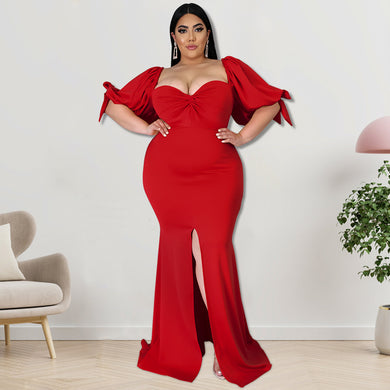 Plus puff sleeve slit dress(AY2323)