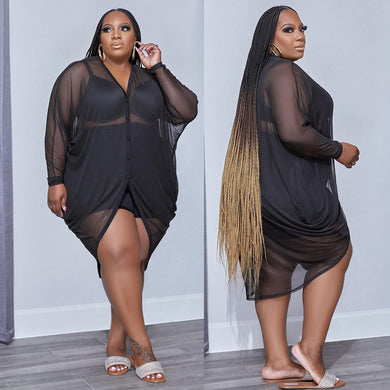 Plus V-Neck Mesh Skirt Sheer Dress(AY2360)