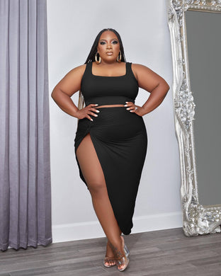 Solid color slit two-piece set AY2239