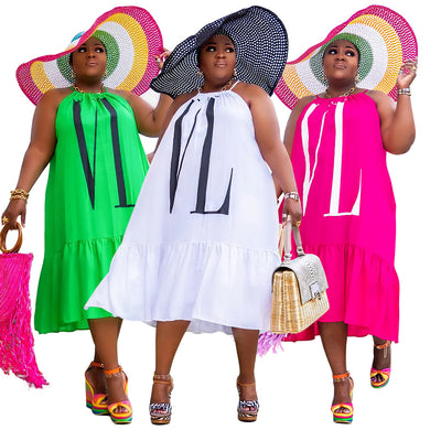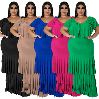 Fashion Solid Color Print Ruffle Dress(AY2362)