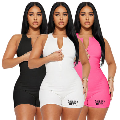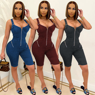 Zipper sleeveless straight tube jumpsuit shorts AY2775