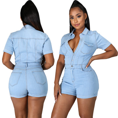 Fashion button up jumpsuit shorts AY3023